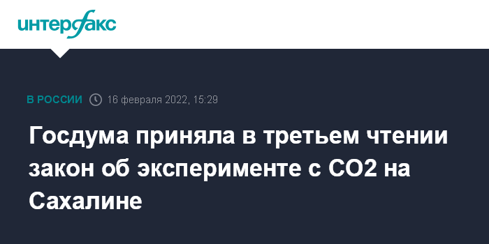 Госдума приняла в третьем чтении закон об эксперименте с CO2 на Сахалине