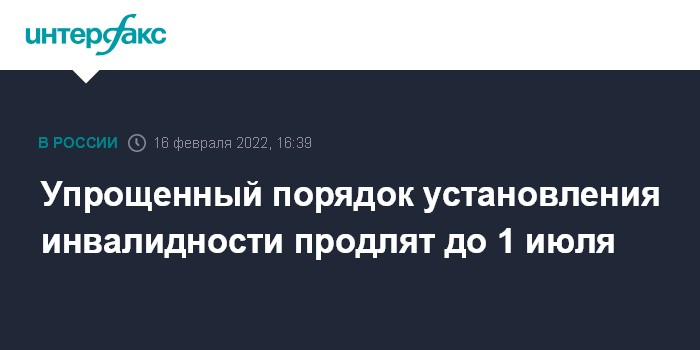 "Подготовлено постановление правительства о продлении упрощенного порядка установления инвалидности. Он будет действовать до 1 июля. До этого времени, как и сейчас, гражданам не надо будет лично обращаться в бюро медико-социальной экспертизы, чтобы подтвердить ранее присвоенную группу инвалидности либо чтобы получить ее впервые", - сказал Мишустин, выступая на президиуме Координационного совета по борьбе с коронавирусом.