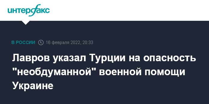 Лавров указал Турции на опасность "необдуманной" военной помощи Украине
