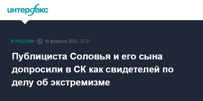 Публициста Соловья и его сына допросили в СК как свидетелей по делу об экстремизме