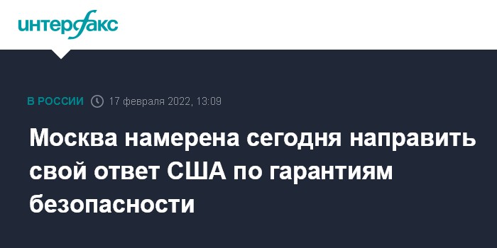 Москва. 17 февраля. INTERFAX.RU - Россия уже в четверг направит свой ответ США по гарантиям безопасности, этот ответ будет гласным, заявил глава МИД РФ Сергей Лавров.