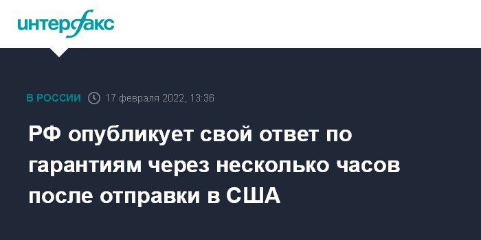 РФ опубликует свой ответ по гарантиям через несколько часов после отправки в США