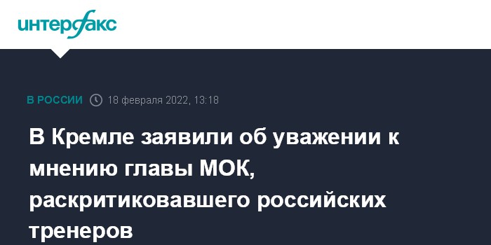 Москва. 18 февраля. INTERFAX.RU - В Кремле заявили, что с уважением относятся к мнению главы Международного олимпийского комитета (МОК) Томаса Баха, выступившего с резкой критикой в адрес всего российского спорта и российских тренеров из-за ситуации вокруг фигуристки Камилы Валиевой, но при этом не всегда согласны с ним.