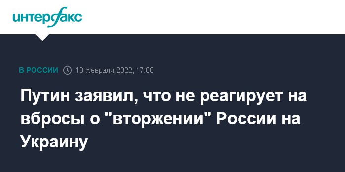 Москва. 18 февраля. INTERFAX.RU - Президент РФ Владимир Путин заявил, что не обращает внимания на информационные вбросы о якобы готовящемся вторжении России на Украину: себе дороже.