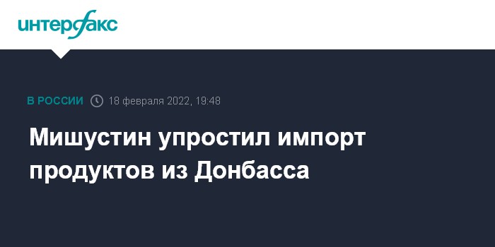 Москва. 18 февраля. INTERFAX.RU - Премьер-министр Михаил Мишустин подписал постановление об упрощении ввоза в Россию товаров с территории отдельных районов Донецкой и Луганской областей Украины, а также вывоза без применения количественных ограничений экспорта и импорта.