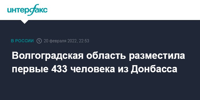 Москва. 20 февраля. INTERFAX.RU - Волгоградская область приняла первую партию беженцев из самопровозглашенных республик Донбасса, прибывших в регион по железной дороге в воскресенье вечером, сообщает пресс-служба обладмина.