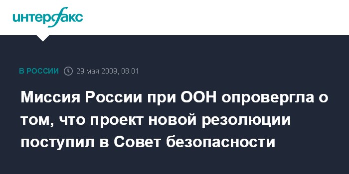 Как сообщил в пятницу "Интерфаксу" пресс-секретарь миссии России при ООН Руслан Бахтин, никакой проект резолюции в Совет Безопасности ООН не поступал.