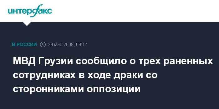 Москва. 29 мая. INTERFAX.RU - МВД Грузии сообщает в четверг вечером, что трое сотрудников министерства получили ножевые ранения в ходе инцидента перед зданием парламента Грузии.