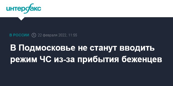 Москва. 22 февраля. INTERFAX.RU - Власти Московской области не намерены вводить режим чрезвычайной ситуации в связи с прибытием в регион беженцев из Луганской и Донецкой народных республик, сообщил губернатор Подмосковья Андрей Воробьев.