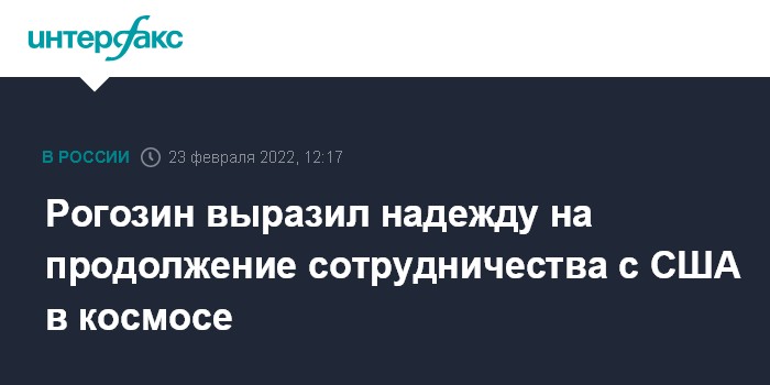 Москва. 23 февраля. INTERFAX.RU - Глава "Роскосмоса" Дмитрий Рогозин надеется, что обострение отношений между Россией и США не повлияет на сотрудничество в космической сфере.