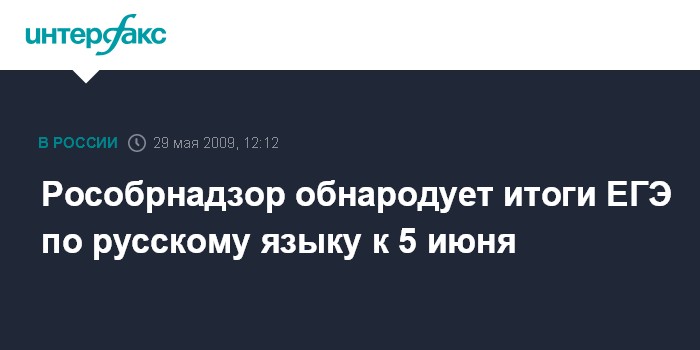 Москва. 29 мая. INTERFAX.RU - Информация о результатах сдачи Единого государственного экзамена (ЕГЭ) по русскому языку станет известна к 5 июня, сообщила глава Рособорнадзора Любовь Глебова.