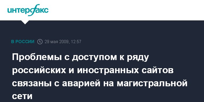Проблемы с доступом к ряду российских и иностранных сайтов связаны с аварией на магистральной сети