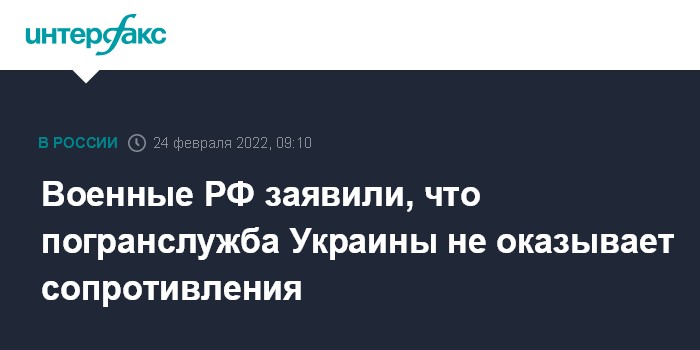 Москва. 24 февраля. INTERFAX.RU - Российская армия не встречает сопротивления со стороны пограничников Украины, заявили в Минобороны РФ.