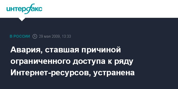 Авария, ставшая причиной ограниченного доступа к ряду Интернет-ресурсов, устранена