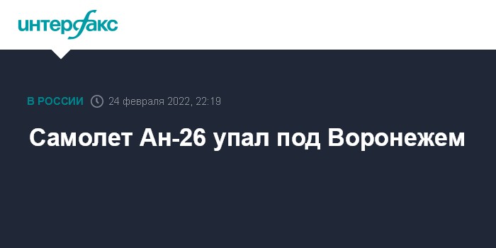 "24 февраля в Воронежской области при проведении планового полета по перевозке военного имущества потерпел катастрофу самолет Ан-26 ВКС России. Экипаж погиб", - сообщила пресс-служба Западного военного округа.