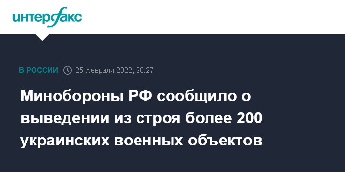 Минобороны РФ сообщило о выведении из строя более 200 украинских военных объектов