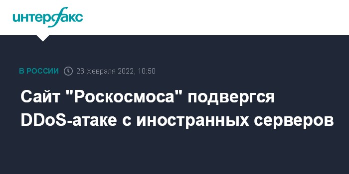Москва. 26 февраля. INTERFAX.RU - Сайт "Роскосмоса" подвергся DDoS-атаке с иностранных серверов, сообщила пресс-служба госкорпорации в субботу.