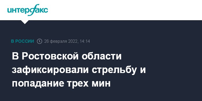 Москва. 26 февраля. INTERFAX.RU - Погрануправление ФСБ в Ростовской области зафиксировало попадание трех мин на территорию РФ и стрельбу со стороны Украины, никто не пострадал.