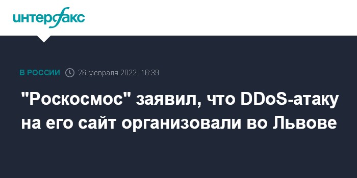 Москва. 26 февраля. INTERFAX.RU - В "Роскосмосе" заявляют, что DDoS-атака на сайт госкорпорации была организована из Львова, данные об исполнителе будут переданы компетентным органам.