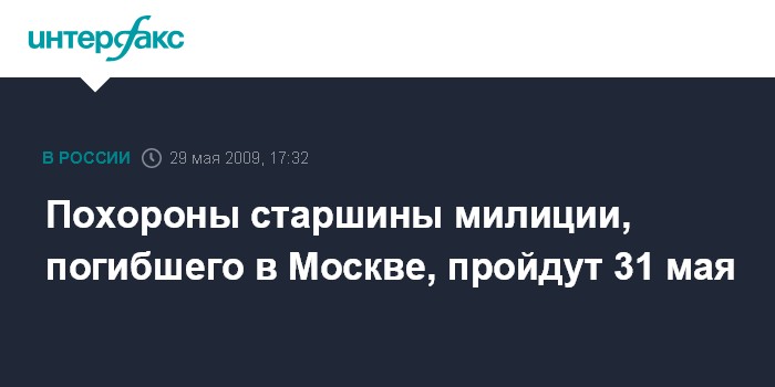 Похороны старшины милиции, погибшего в Москве, пройдут 31 мая