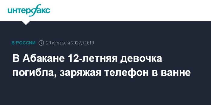 В Абакане 12-летняя девочка погибла, заряжая телефон в ванне