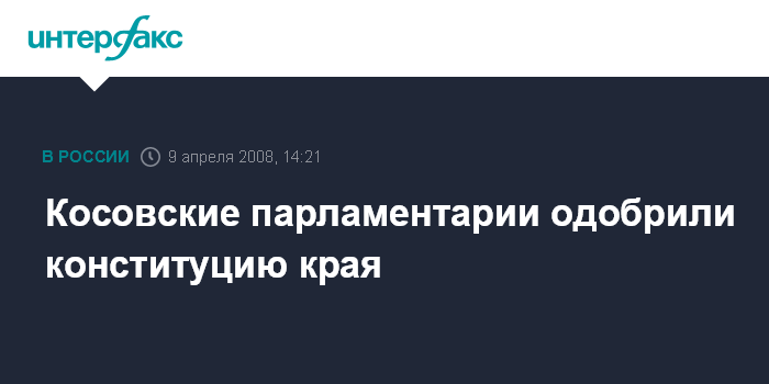 Белград. 9 апреля. INTERFAX.RU - Депутаты Cкупщины (парламента) сербского края Косово, провозгласившего в одностороннем порядке независимость, единогласно одобрили в среду проект конституции, сообщает белградская независимая радиостанция "Б-92".