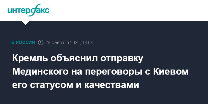 Накануне стало известно, что Мединский возглавил российскую делегацию для переговоров с украинской стороной.