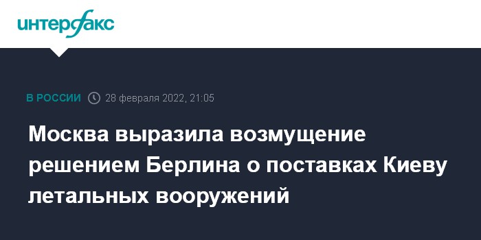 Москва. 28 февраля. INTERFAX.RU - Официальный представитель МИД РФ Мария Захарова выразила возмущение решением правительства Германии о начале поставок Украине летальных вооружений и заявила, что этим самым Берлин "призывает призраков уже не холодной, а самой что ни на есть "горячей" войны".