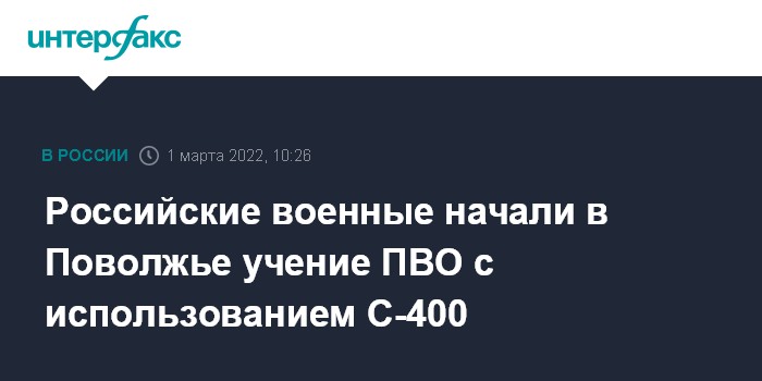 Москва. 1 марта. INTERFAX.RU - Учение с расчетами системы противовоздушной обороны (ПВО) дальнего действия С-400 "Триумф" Центрального военного округа (ЦВО) проходит в Саратовской области, сообщает пресс-служба ЦВО во вторник.