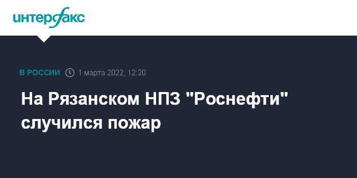 Москва. 1 марта. INTERFAX.RU - На Рязанском НПЗ "Роснефти" (АО "РНПК) в районе Южного промузла случился пожар, его тушат, сообщили в областном управлении МЧС.