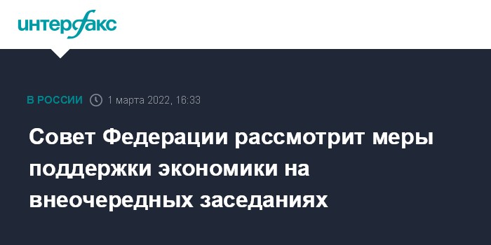 Совет Федерации рассмотрит меры поддержки экономики на внеочередных заседаниях