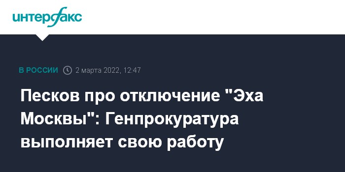 Песков про отключение "Эха Москвы": Генпрокуратура выполняет свою работу