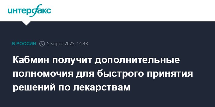 "Правительство получит дополнительные полномочия, которые позволят быстрее принимать решения по лекарствам, медицинским изделиям, причем по самому широкому кругу вопросов. Мы сможем вводить ограничения на вывоз медицинских изделий из нашей страны, которые были доставлены из государств, присоединившихся к санкциям", - заявил Мишустин в ходе заседания правительства.
