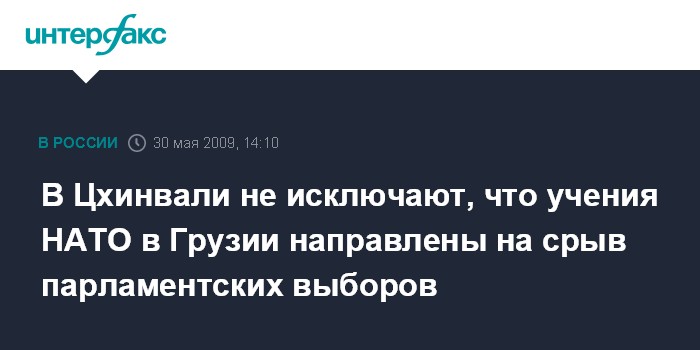 Москва. 30 мая. INTERFAX.RU - Министерство иностранных дел Южной Осетии считает, что идущие в Грузии учения НАТО проводятся специально для нагнетания ситуации в регионе и, возможно, имеют целью срыв выборов в югоосетинский парламент.