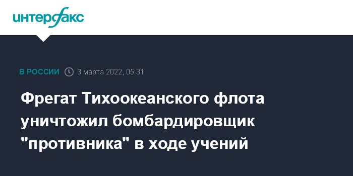 Фрегат Тихоокеанского флота уничтожил бомбардировщик "противника" в ходе учений