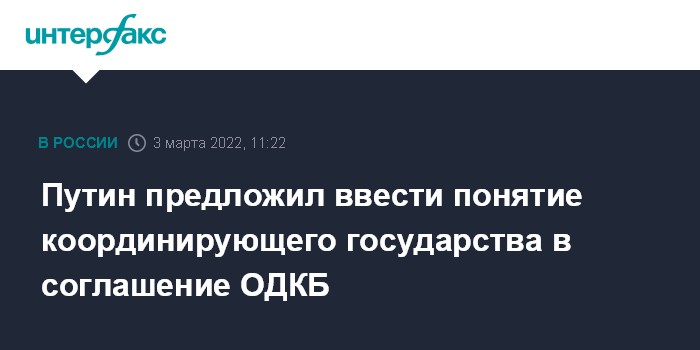 Путин предложил ввести понятие координирующего государства в соглашение ОДКБ