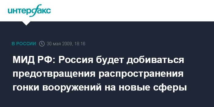 МИД РФ: Россия будет добиваться предотвращения распространения гонки вооружений на новые сферы
