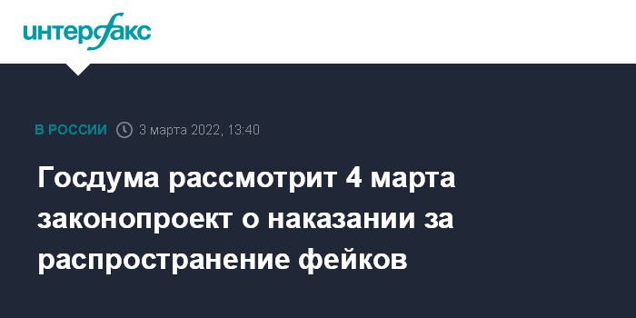2 марта глава комитета Госдумы по безопасности и противодействию коррупции Василий Пискарев заявил о внесении в палату поправок в Уголовный кодекс, устанавливающих наказания за ложную информацию о деятельности Вооруженных Сил РФ.