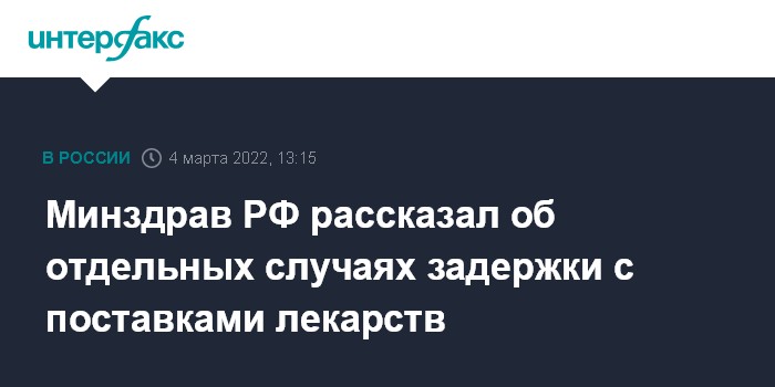 Минздрав РФ рассказал об отдельных случаях задержки с поставками лекарств