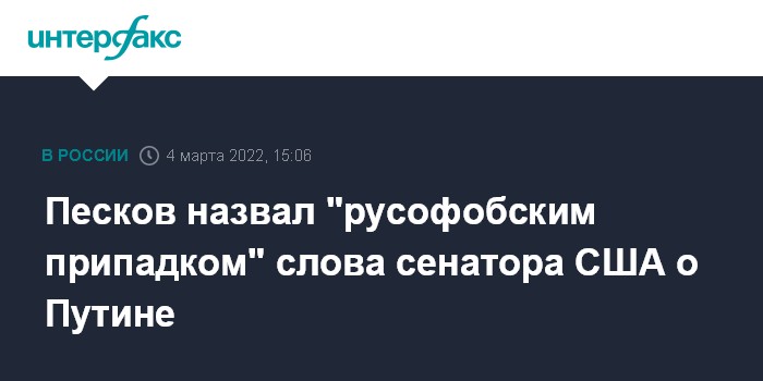Песков назвал "русофобским припадком" слова сенатора США о Путине