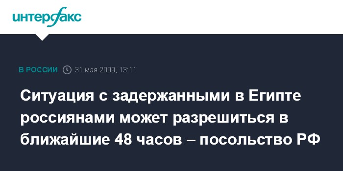 Каир. 31 мая. INTERFAX.RU - Египетские власти обещают решить вопрос об освобождении российских граждан, задержанных в Каире, в течение ближайших двух дней, сообщил "Интерфаксу" в воскресенье второй секретарь посольства РФ в Египте Юсуп Абакаров.
