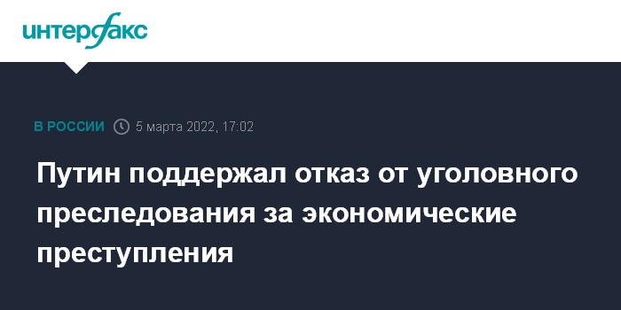 Путин поддержал отказ от уголовного преследования за экономические преступления