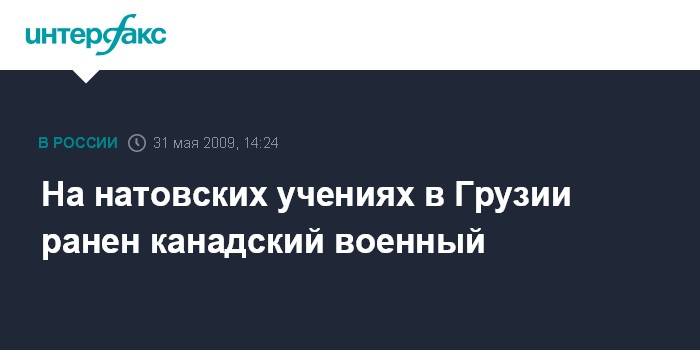Тбилиси. 31 мая. INTERFAX.RU - В ходе проходящих на военной базе в Вазиани, в окрестностях Тбилиси, учений "Cooperative Longbow/Lancer 2009" в воскресенье получил ранение канадский военнослужащий.