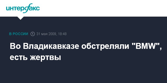 Владикавказ. 31 мая. INTERFAX.RU - Во Владикавказе в результате обстрела автомобиля БМВ Х-5 два человека погибли, есть раненые.