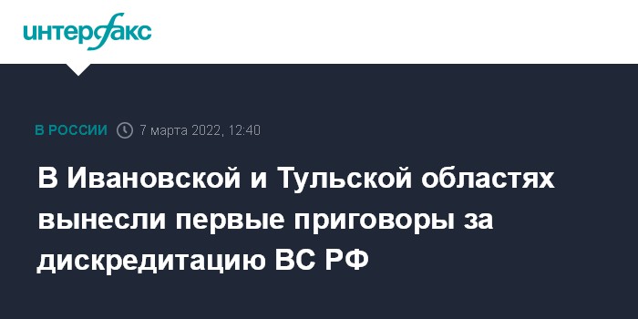 В Ивановской и Тульской областях вынесли первые приговоры за дискредитацию ВС РФ