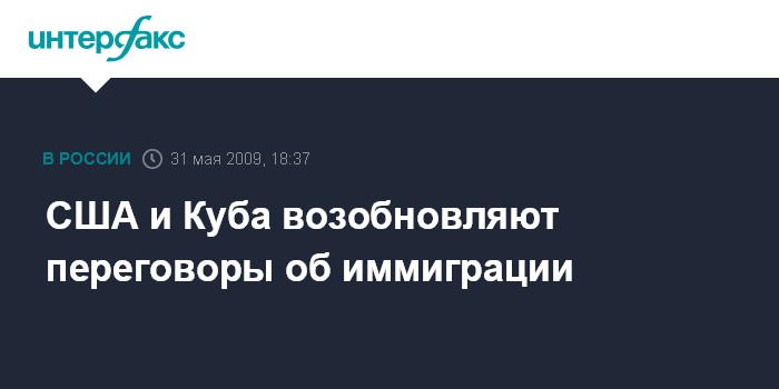 Лондон. 31 мая. INTERFAX.RU - США заявили, что Куба согласилась возобновить прямые переговоры с Вашингтоном по вопросам иммиграции, которые были разорваны при администрации Джорджа Буша, передает в воскресенье британская телерадиовещательная корпорация Би-би-си.
