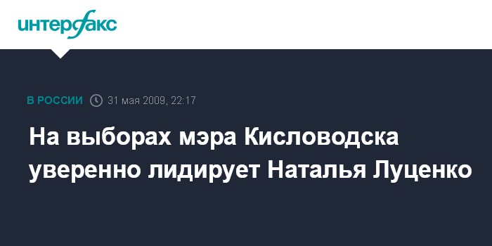 Ставрополь. 31 мая. ИНТЕРФАКС-ЮГ - На выборах главы города-курорта Кисловодска, по предварительным данным, с большим отрывом лидирует исполняющая обязанности главы города, выдвиженец партии "Единая Россия" Наталья Луценко.