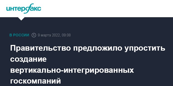 Правительство предложило упростить создание вертикально-интегрированных госкомпаний
