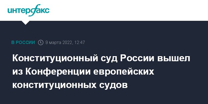 Москва. 9 марта. INTERFAX.RU - Конституционный суд России заявил о выходе из Конференции европейских конституционных судов (КЕКС) с 5 марта.