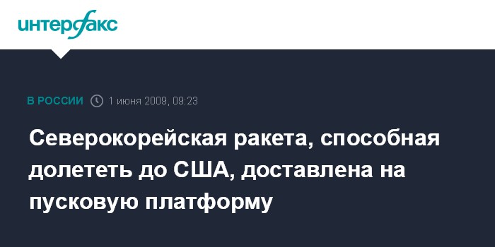 Москва. 1 июня. INTERFAX.RU - Самая передовая северокорейская ракета большой дальности, способная достичь Аляски, перевезена на новую пусковую платформу, расположенную на западе страны на границе с Китаем, пишет в понедельник южнокорейская газета "Дунга ильбо".